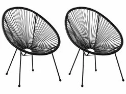 Tämä kahden puutarhatuolin setti, joka on saanut inspiraationsa ikonisesta meksikolaisesta muotoilusta, piristää minkä tahansa sisä- tai ulkotilan oleskelualuetta. Narutuolien istuinten tyylikäs punos on valmistettu mustasta polyrottingista. Tukeva, kolmijalkainen runko on valmistettu kestävästä jauhemaalatusta teräksestä vakauden takaamiseksi. Nämä narutuolit ovat trendikäs viimeistelevä silaus niin retrotyylisiin kuin moderneihinkin puutarhoihin tai olohuoneisiin.