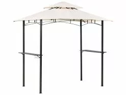 Valmistele puutarhasi grillikauteen ja lämpimiin, perheen ja ystävien kanssa vietettäviin kesäiltoihin tällä paviljongilla. Sen alle mahtuu helposti pieni ruokailu- tai sohvaryhmä. Kestävästä, mustaksi jauhemaalatusta teräksestä valmistettu runko takaa vakauden. Beige, tuuletusaukoilla varustettu kangaskatos tarjoaa täydellisen suojan UV-säteiltä ja jatkuvan ilmankierron. Lisäksi mukana tulevat hyllyt ja ripustuskoukut mahdollistavat astioiden säilyttämisen tai kukkaruukkujen esille panon. Puutarhakatos sopii sekä moderneihin että perinteisiin ulkotiloihin, tuoden niihin tyyliä.