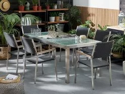 Beliani 6-istuttava Ulkoruokailuryhmä 3-osainen Lasitaso Polyrottinkituolit Musta GROSSETO
